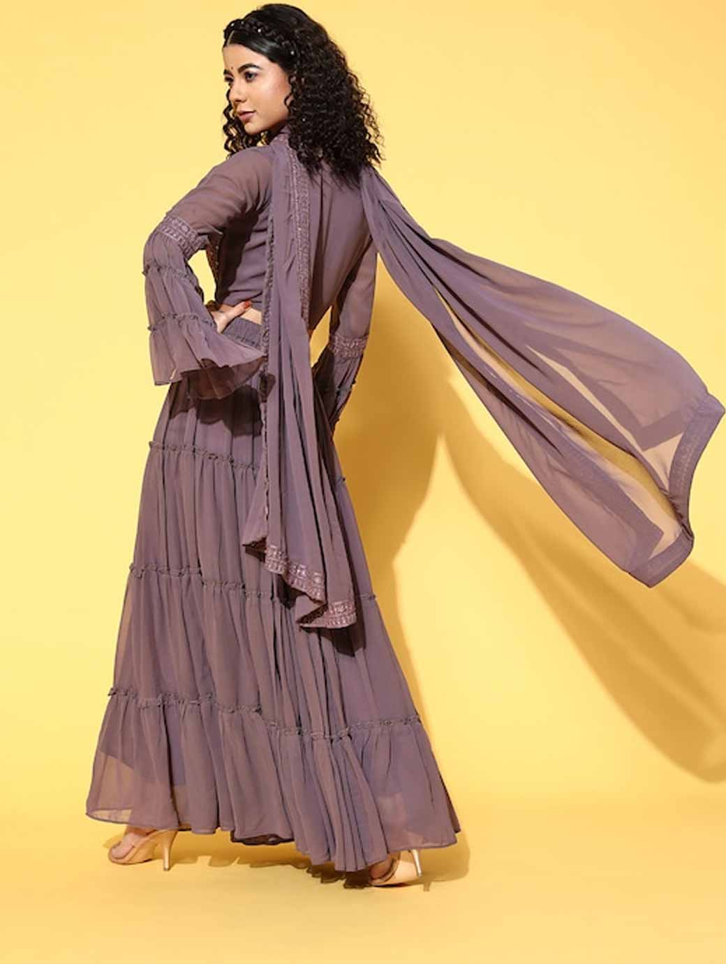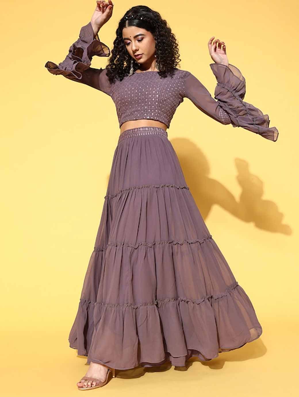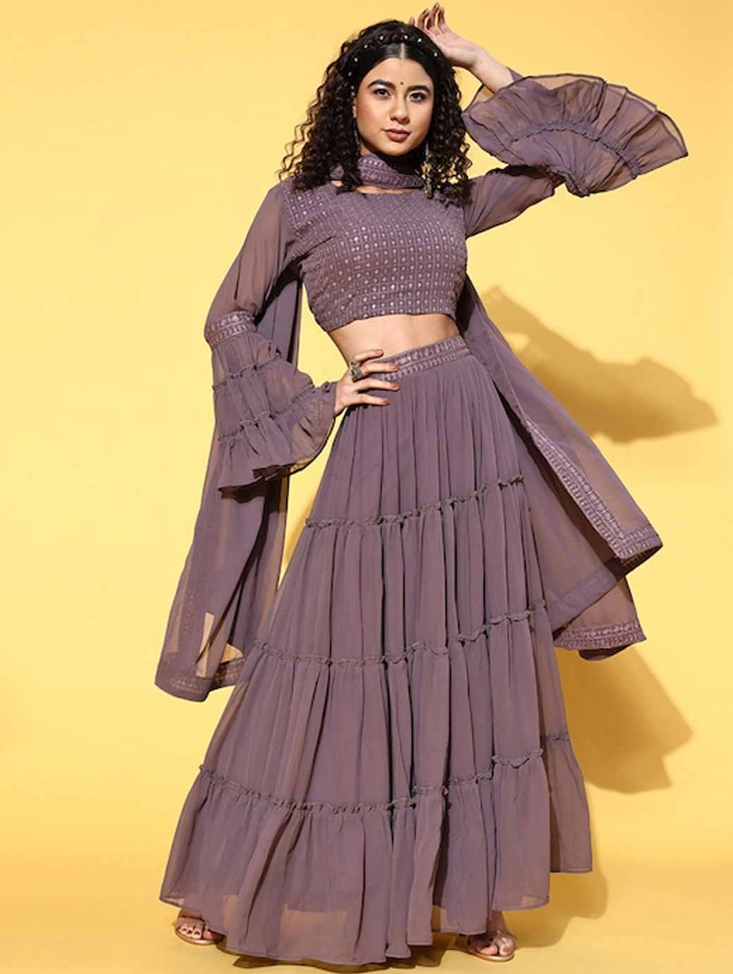 Elegant Mauve Embroidered Ready to Wear Lehenga Choli with Dupatta