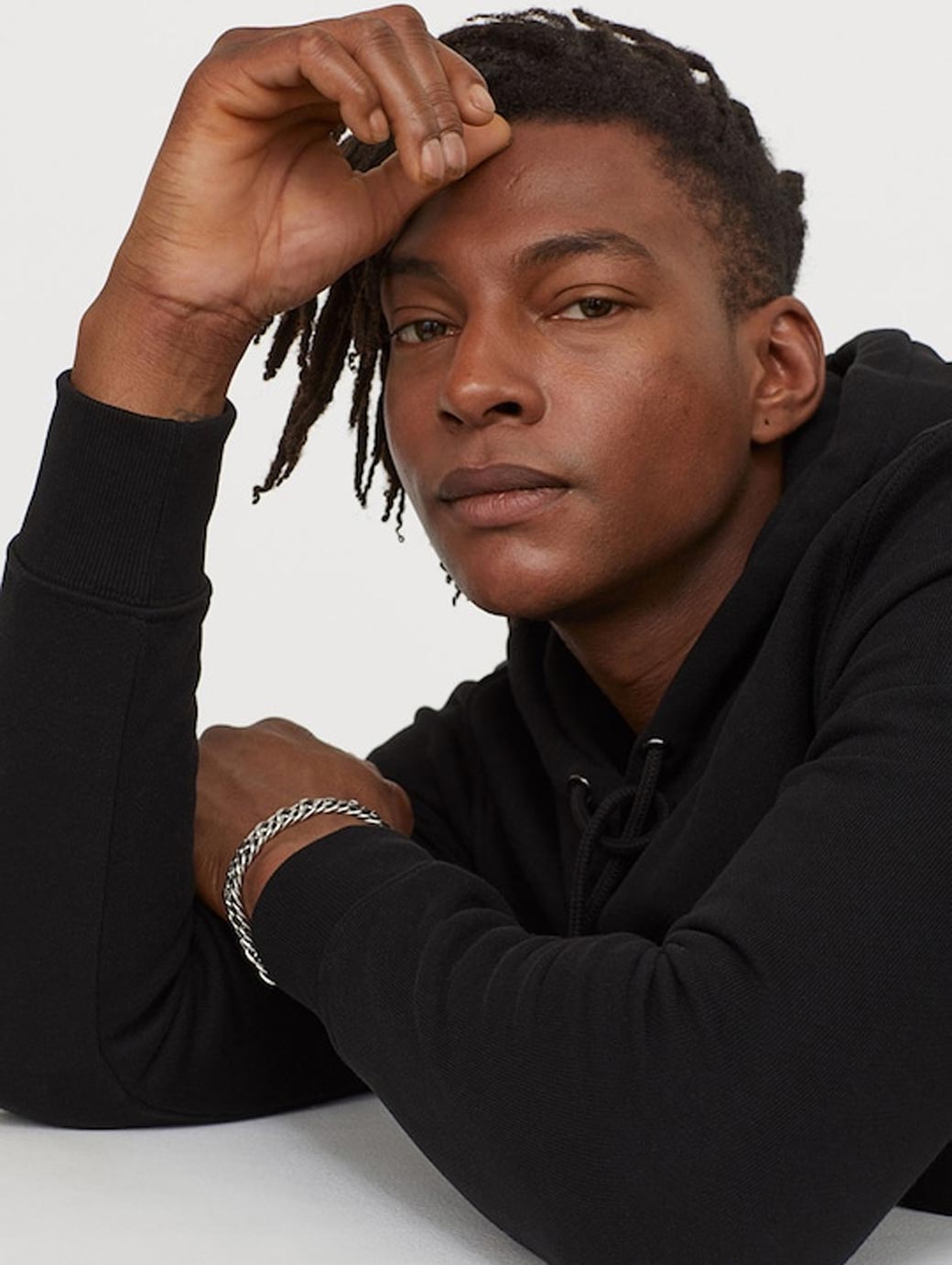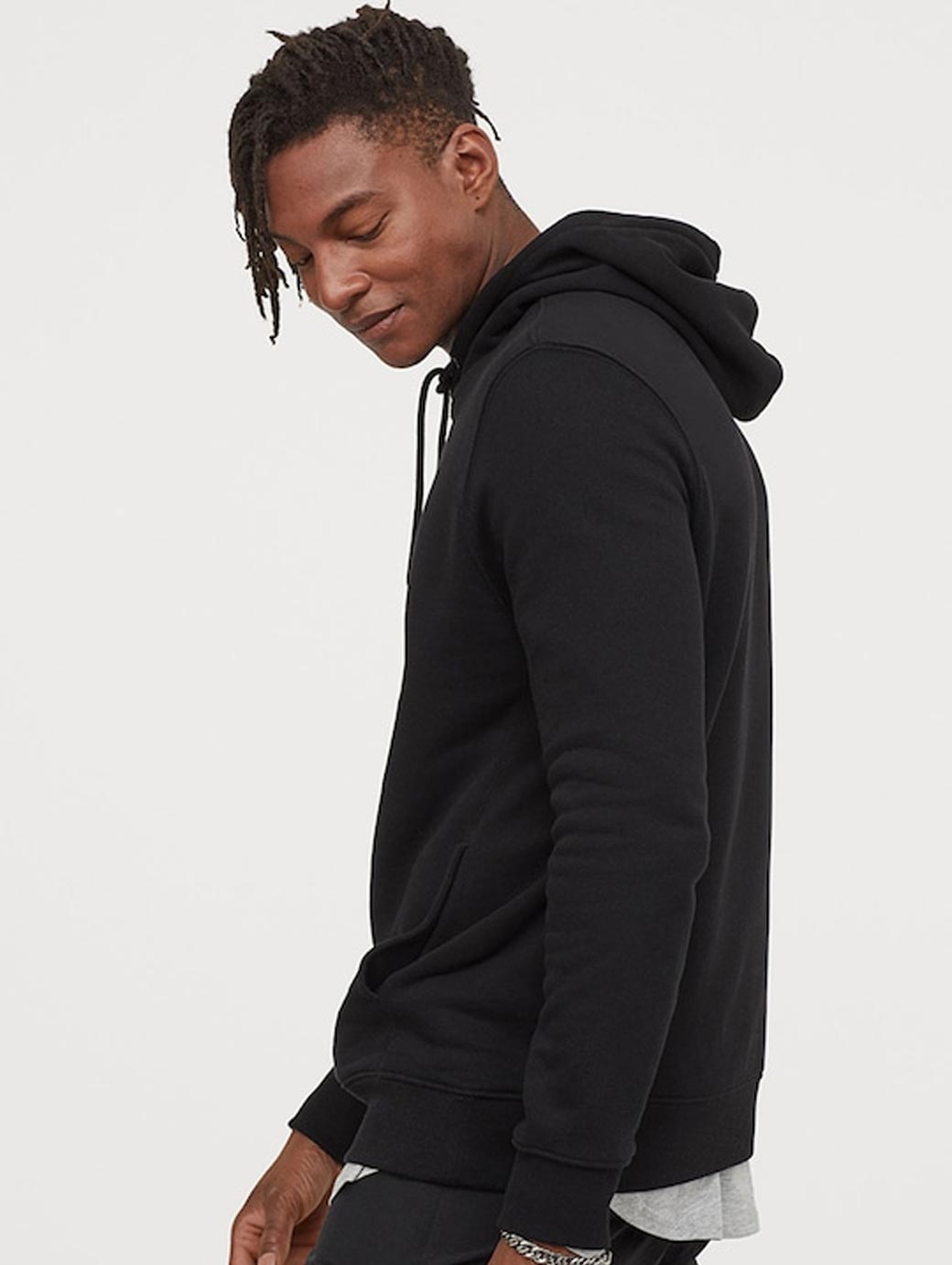 Top in cotton sweatshirt fabric with a lined drawstring hood with a wrap over front. Long sleeves, a pocket and ribbing at the cuffs and hem