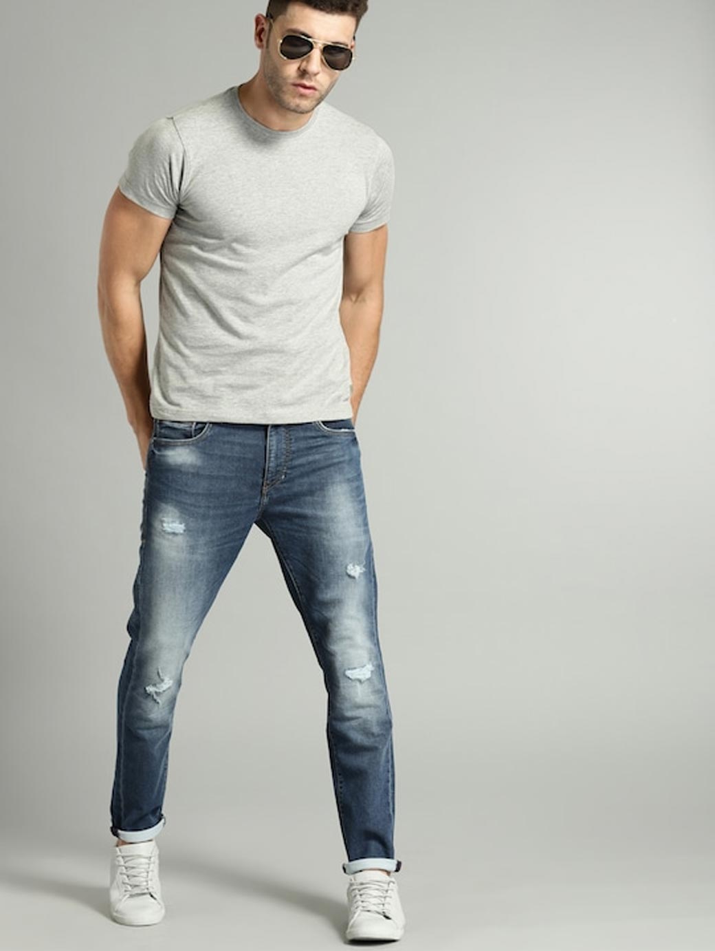 Grey melange solid T-shirt, has a round neck, short sleeves