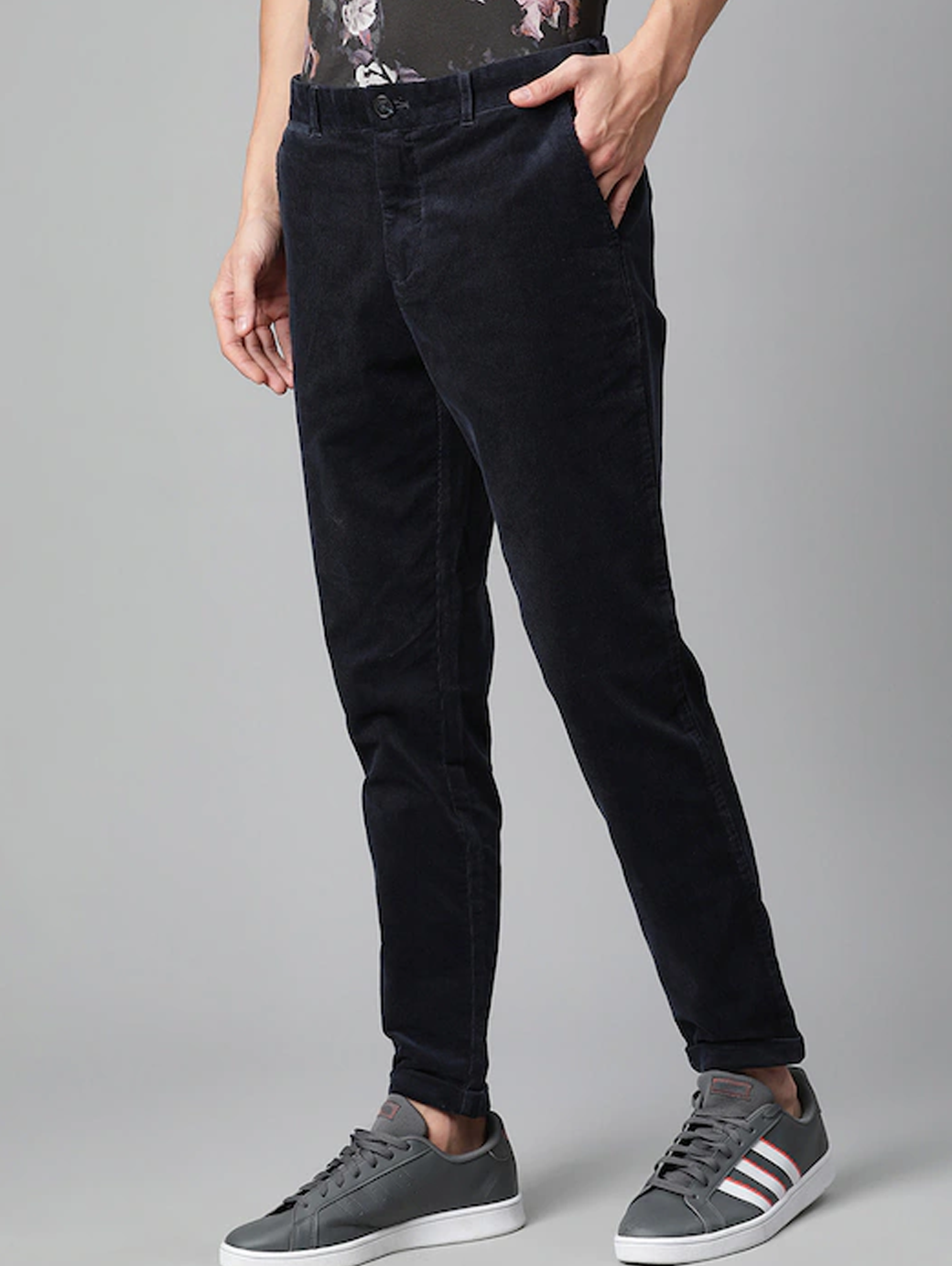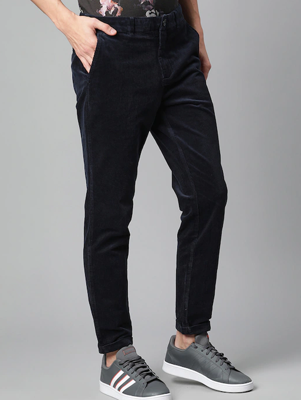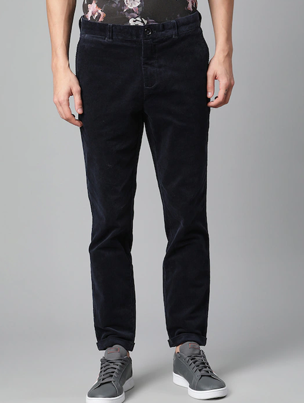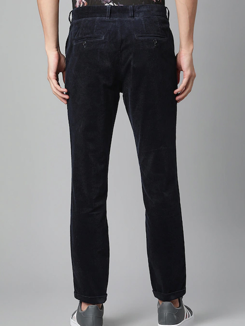 Men Navy Blue Mid Rise Corduroy Trousers