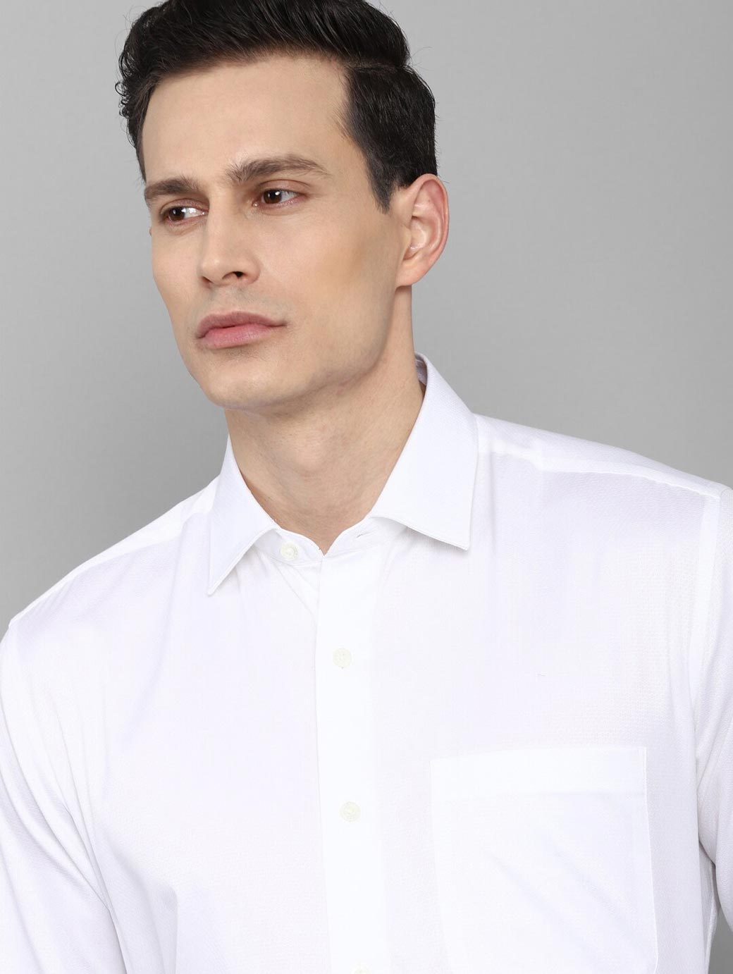 White solid opaque Formal shirt ,has a spread collar, button placket, na pocket, long regular sleeves, straight hem