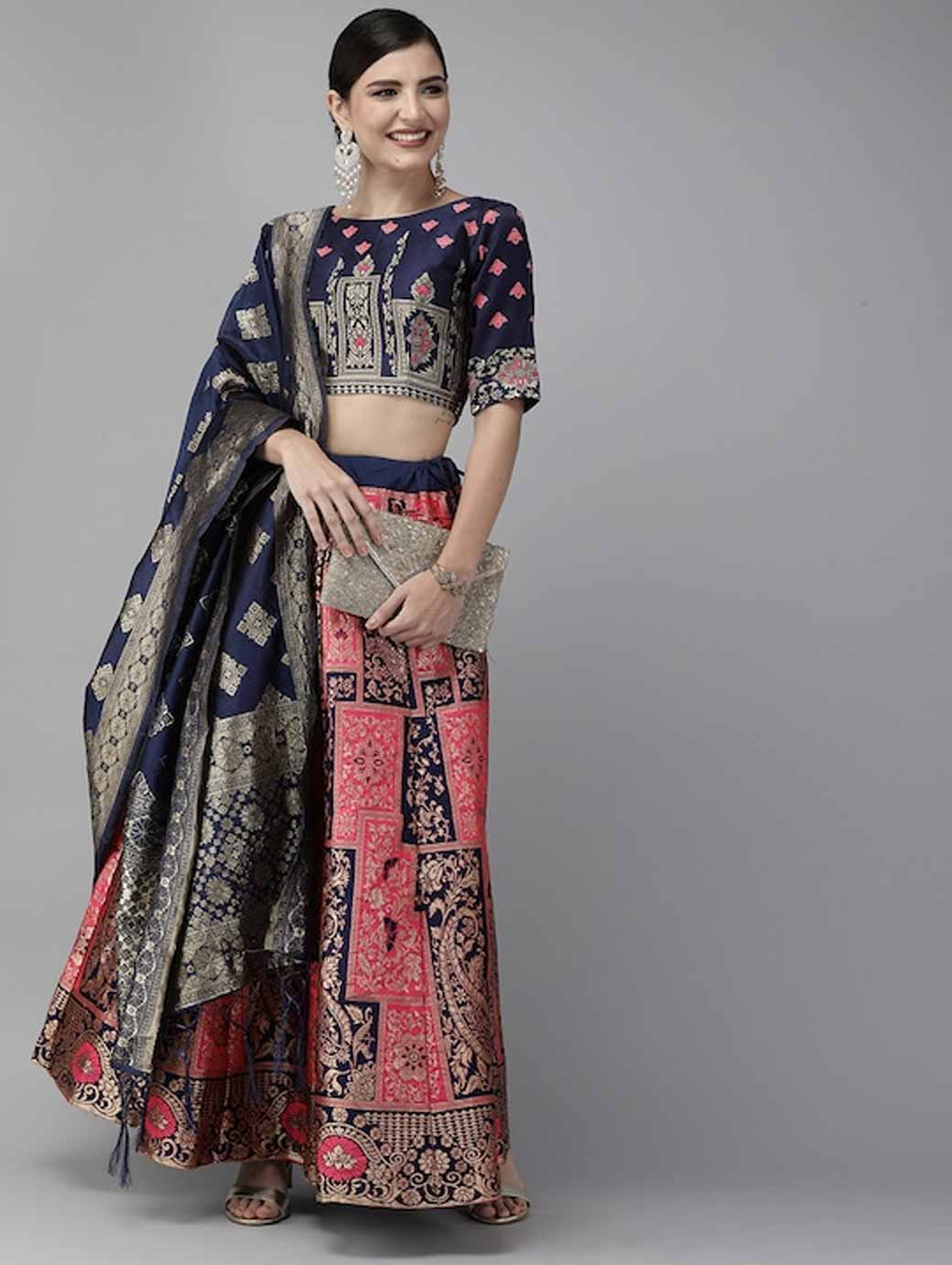 Beige and pink printed lehenga choli,