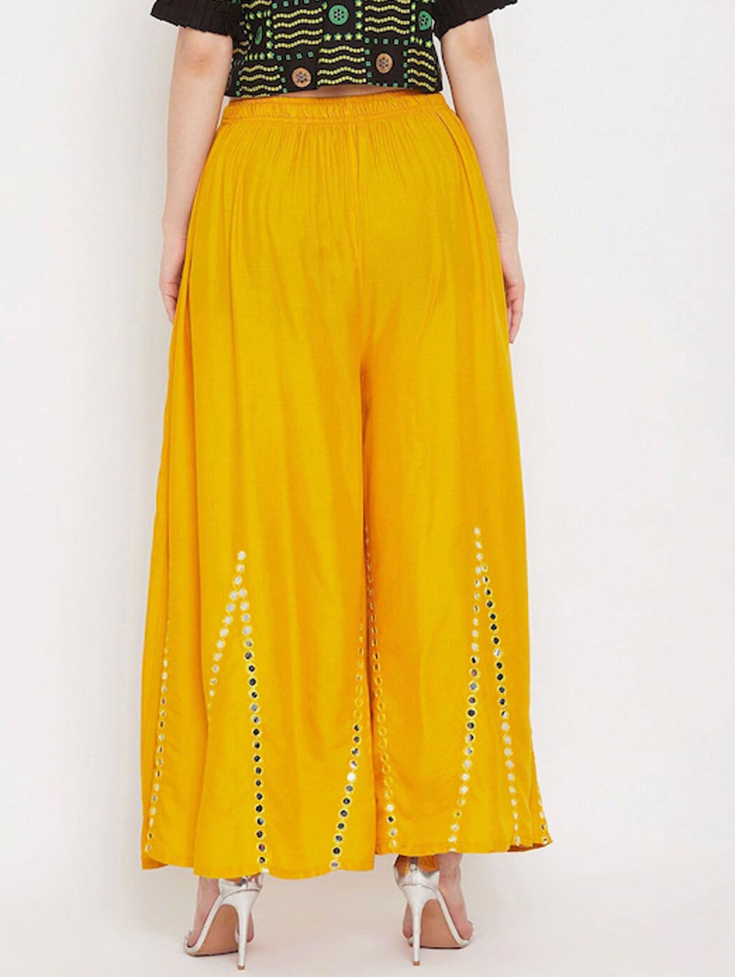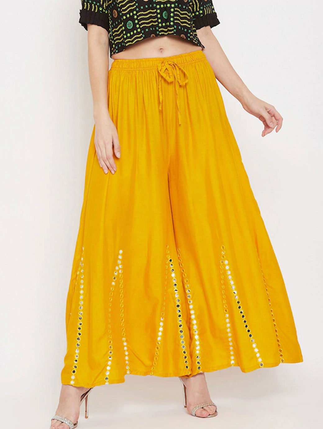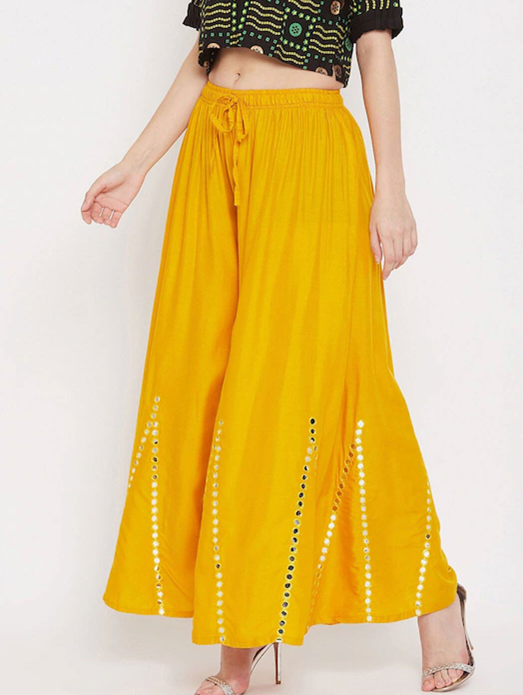 Women Mustard Yellow Embellished Flared Ethnic Palazzo