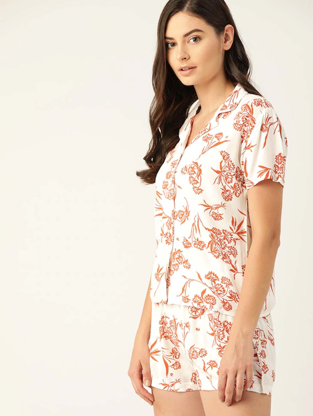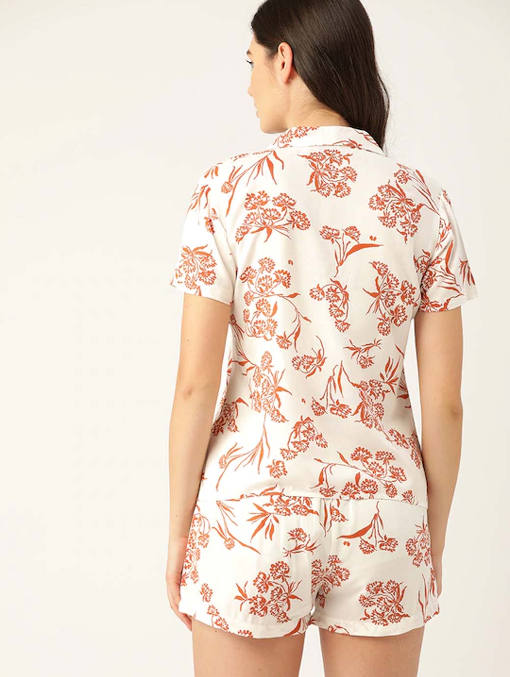 Women White & Brown Printed Night suit